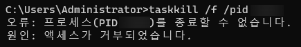 오류: 프로세스(PID 번호)를 종료할 수 없습니다.